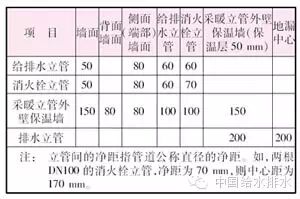 采用管井整體保溫方式:管道保溫層厚度是影響水道井尺寸的重要因素,如果管道不單獨(dú)保溫,而采用水道井整體保溫方式,則可以減少管道間距,縮小管道井尺寸。另外當(dāng)管道井位于戶內(nèi)區(qū)域,未直接與外界空氣接觸,且管井內(nèi)有熱力管道時(shí),可不必保溫。