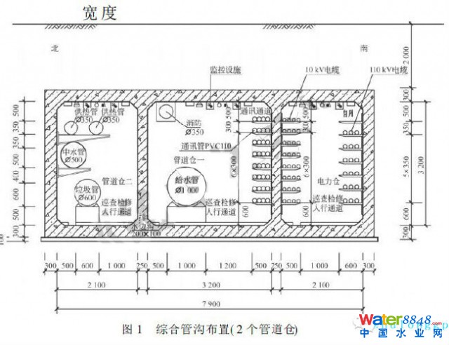 綜合管溝又稱共同溝或市政綜合管廊,具有統(tǒng)一建設(shè)、節(jié)約空間的優(yōu)勢。珠海橫琴開發(fā)區(qū)綜合管溝,全長20.9千米,投資17億元,地處填海軟弱土層,設(shè)計施工難度大,是我國現(xiàn)代化大型綜合管溝的典型工程。該綜合管溝采用矩形三倉斷面,納入給水管、中水管、220千伏高壓電纜、供熱管、垃圾真空管、弱電線纜。其設(shè)計經(jīng)驗有較大的參考價值。