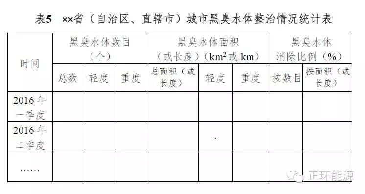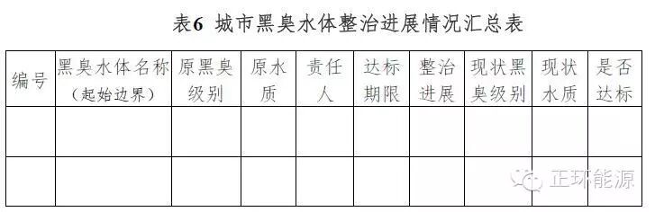 各城市應參照表6內容,按規(guī)定報送每季度整治城市黑臭水體情況。