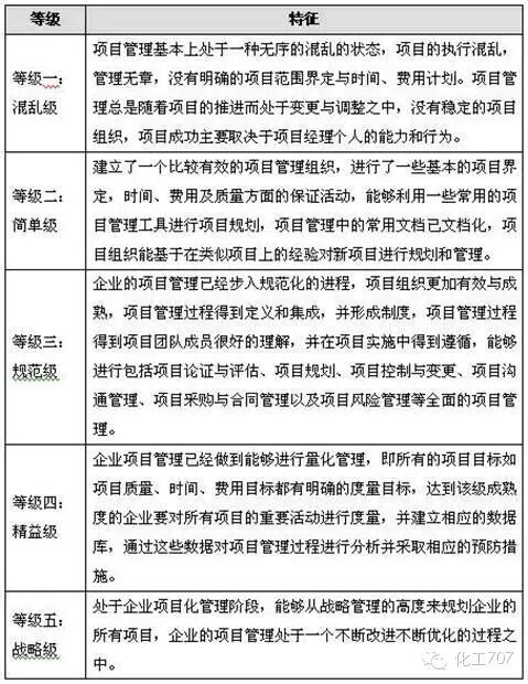 根據(jù)項目管理理論,企業(yè)的項目管理能力可以分為五個等級: