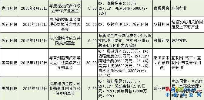 表4:環(huán)保公司參與設(shè)立的產(chǎn)業(yè)基金