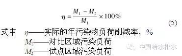 年污染物負(fù)荷削減率可按式(5)進(jìn)行計(jì)算,如果該值不低于要求的年污染物負(fù)荷削減率,則達(dá)標(biāo)。當(dāng)對比區(qū)域和試點(diǎn)區(qū)域的面積略有差異時(shí),可按比例對污染物負(fù)荷進(jìn)行折算。