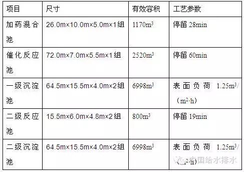 1 廢水深度處理工程主要構(gòu)筑物及其參數(shù)
