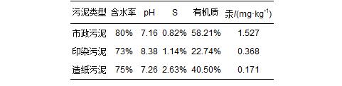 本次研究的實驗材料為3種不同類型的新鮮污泥:市政污泥、印染污泥和造紙污泥,分別采自杭州城市污水處理廠、江陰印染污水處理廠和富陽造紙污水處理廠.