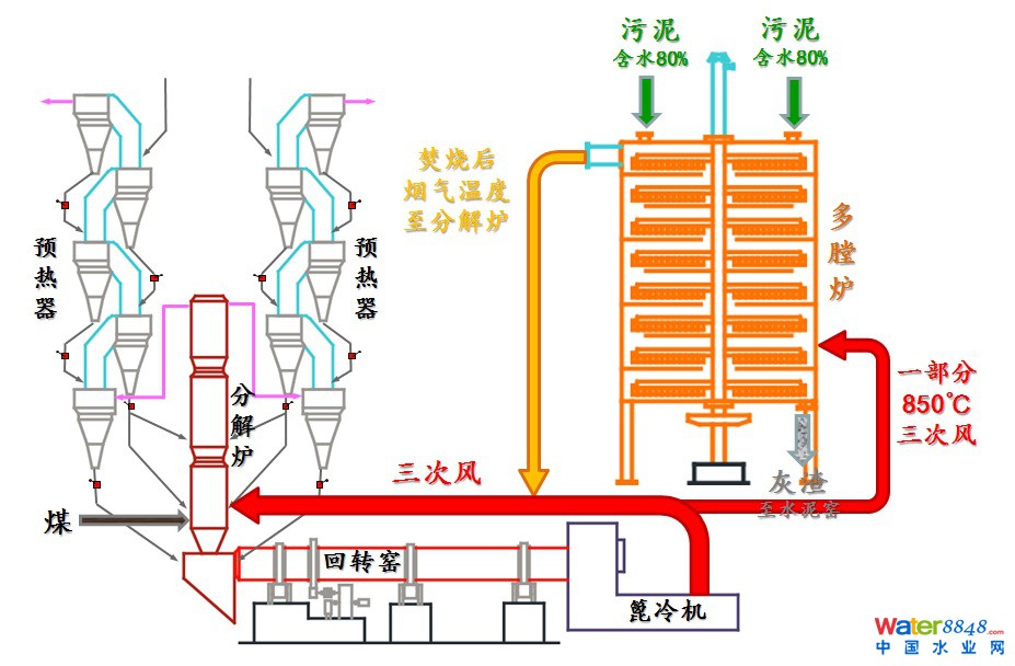 多膛爐污泥焚燒與水泥窯聯(lián)運(yùn)工藝流程