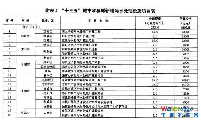 附件:湖北省“十三五”城鎮(zhèn)污水處理及再生利用設(shè)施建設(shè)規(guī)劃