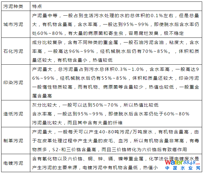 典型工業(yè)污泥的特點(diǎn)對(duì)比: