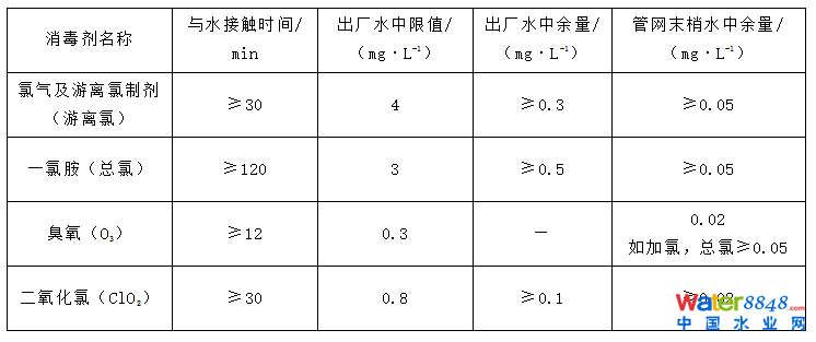 表1 飲用水中消毒劑常規(guī)指標(biāo)及要求