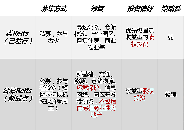 截至2020年4月30日,市場中存續(xù)的類Reits共68只,發(fā)行額合計為1271.97億元。本次推行的公募Reits與已發(fā)行的類Reits存在較大區(qū)別:
