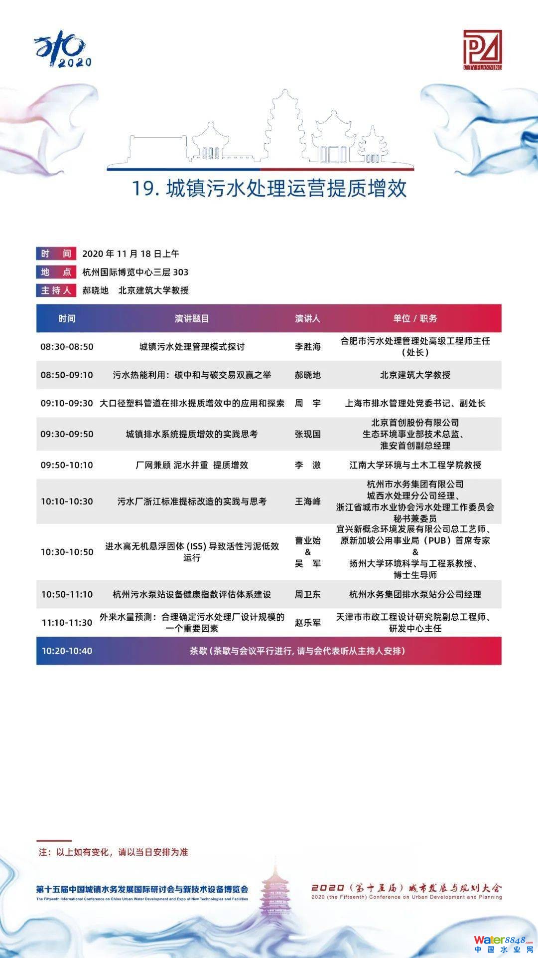 【議程3.0】2場主論壇,39場分論壇,20多位院士大師,400+演講專家,大會專家陣容繼續(xù)揭曉! 第十五屆中國城鎮(zhèn)水務(wù)發(fā)展國際研討會 與新技術(shù)設(shè)備博覽會