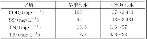 表3為武漢市喻家湖片區(qū)旱季污水及雨季時(shí)CSOs污水水質(zhì)情況。