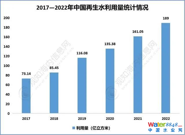 2017—2022年中國(guó)再生水利用量統(tǒng)計(jì)情況