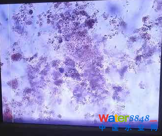 上兩圖為業(yè)主原系統(tǒng)污泥鏡檢,污泥絮狀較差,沉降性差,做沉降比時(shí)污泥上浮,鏡檢菌膠團(tuán)小,絲狀菌及放線菌較多,污泥性狀較差未發(fā)現(xiàn)標(biāo)志出水良好的指示性微生物。